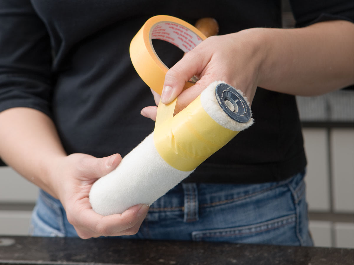 Vous ne voulez pas avoir de peluches de votre nouveau rouleau sur votre surface peinte ? Les poils qui se détachent s'éliminent facilement en rinçant d'abord le rouleau sous l'eau courante (et séchez-le ensuite en le roulant sur du carton) ou enveloppez-le vite fait dans du ruban adhésif léger.
