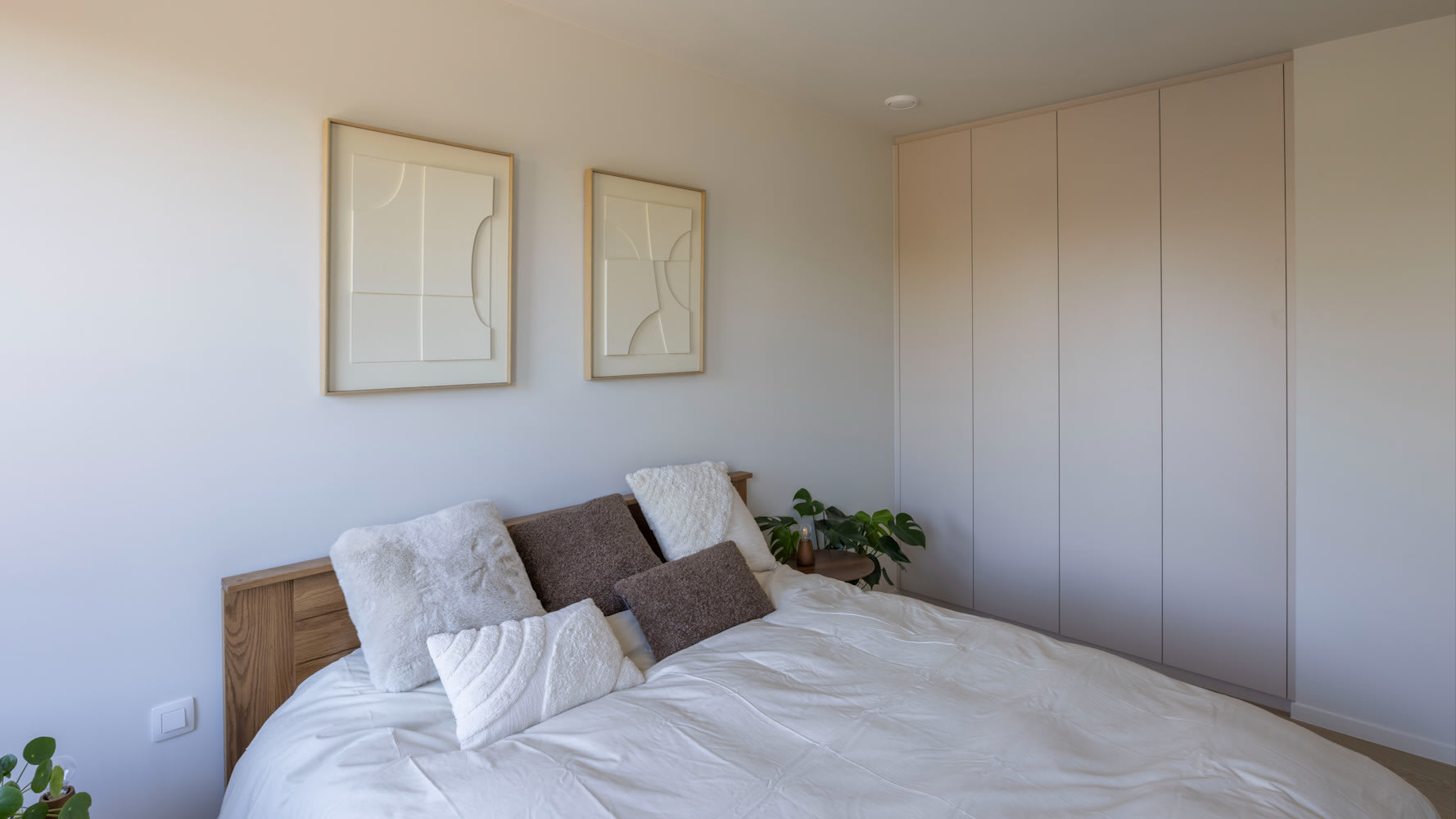 La douce teinte blanc cassé est utilisée de manière cohérente dans toute la maison. C'est une couleur de base parfaite pour ajouter d'autres touches de couleur. Dans la salle de bains, elle crée une atmosphère fraîche et sereine. Dans la chambre à coucher, en revanche, c'est le choix idéal pour ceux qui aiment la tranquillité pure.