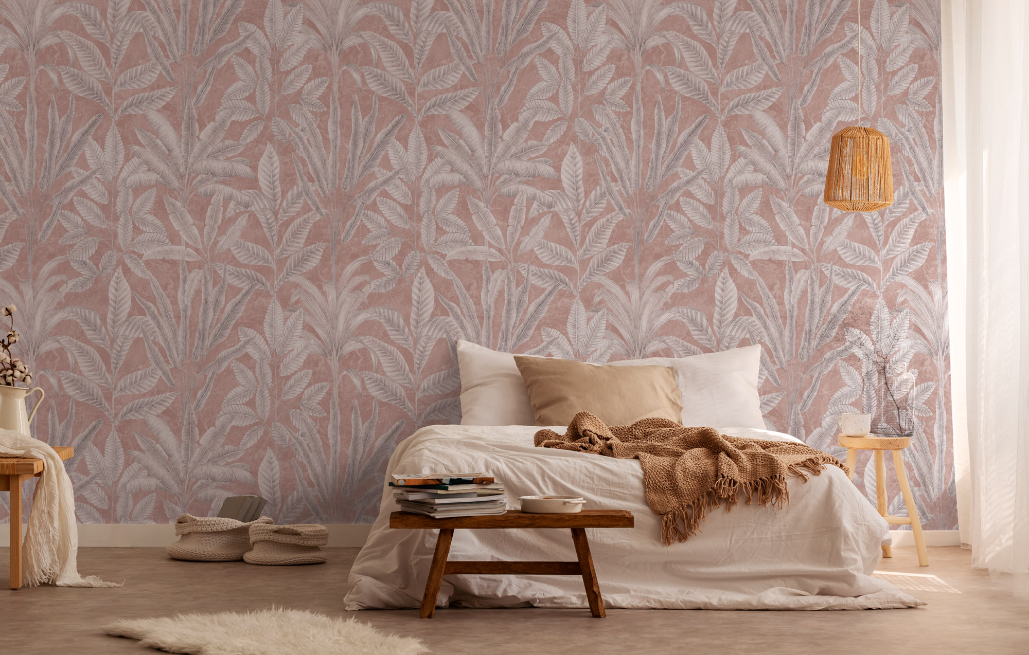 Een andere optie is textielbehang. Behang met textielmotieven zijn rijk bewerkt en geven het gevoel alsof er echt textiel aan de muur hangt. Kies voor patronen als visgraad om van je muur een echte eyecatcher te maken. Andere natuurlijke materialen zoals linnen, sisal en jute geven je kamer een luxueuze twist.